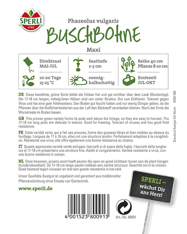 Sperli Gemüsesamen Bohnensamen Buschbohnen